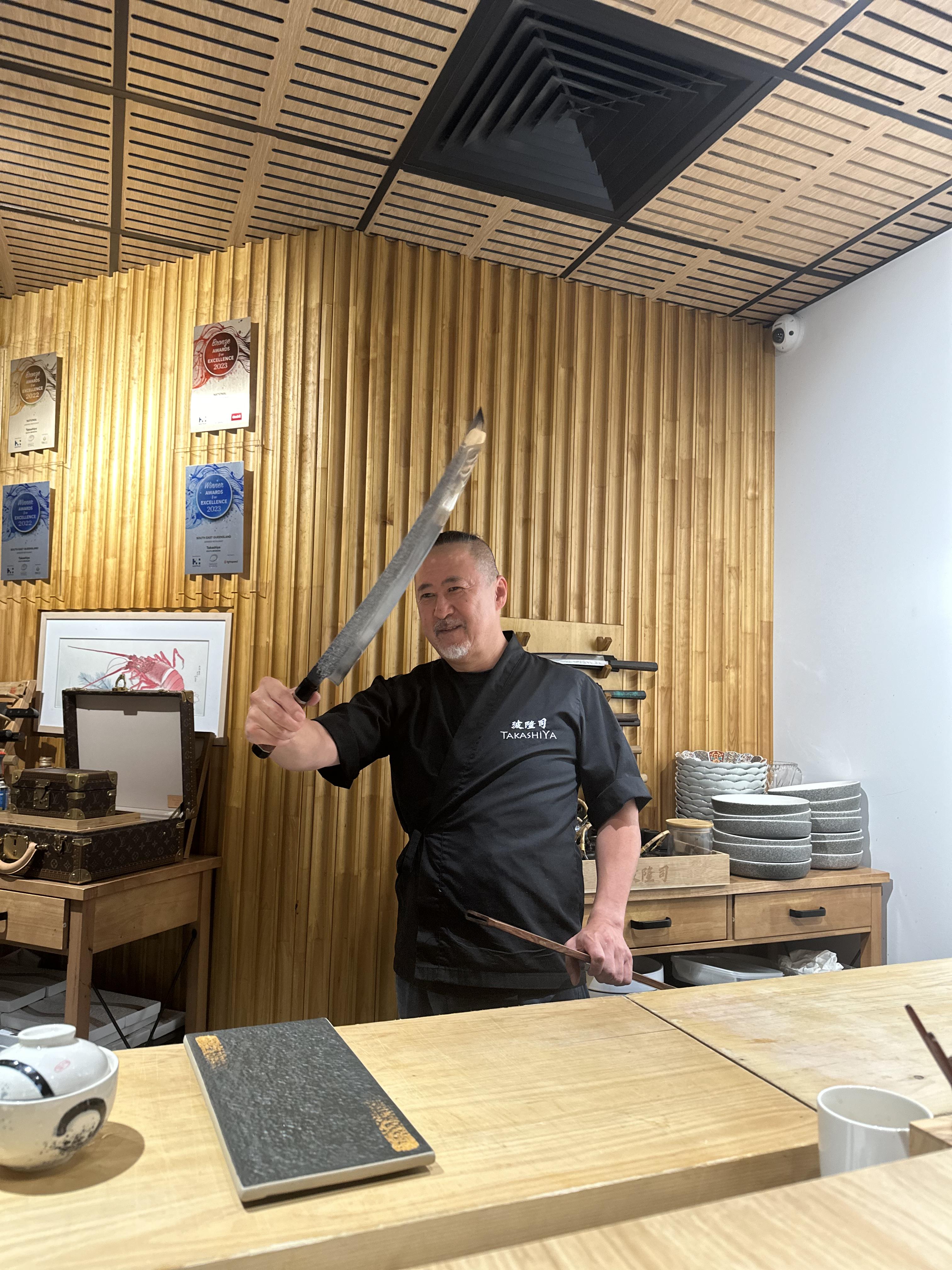 Takashi 셰프는 홋카이도 출신이다. 15살 때 스시 요리사가 되기 위해 식당에서 도제식으로 셰프를 희망하는 젊은 사람들을 쓰는 식당에 견습생으로 들어갔다. 종일 보이지 않는 곳에서 궂은일을 했고, 식당이 문을 닫은 뒤에야 혼자 연습하며 실력을 키우며 셰프의 꿈을 위해 버텨왔다고 한다. 보통 일본 스시 식당 견습생들은 5년 이상 버티고 실력을 인정받아야 겨우 손님 앞에서 칼을 잡을 수 있는 기회가 주어진다. 그런데 Takashi 셰프는 매일 밤마다 칼을 가지고 재료를 준비하는 연습을 치열하게 한 끝에 2년 만에 칼을 잡고 보조 셰프로 일을 시작할 수 있었다. 그때부터 40년을 일본과 호주에서 스시 셰프로 일하면서 장인의 수준에 오르게 됐다. 지금은 자신의 이름을 건 식당을 브리즈번의 강남이라고 할 수 있는 사우스뱅크에 열고, 평론가와 손님들의 찬사를 받으며 지금 까지 마스터 셰프로 일을 하고 있다.