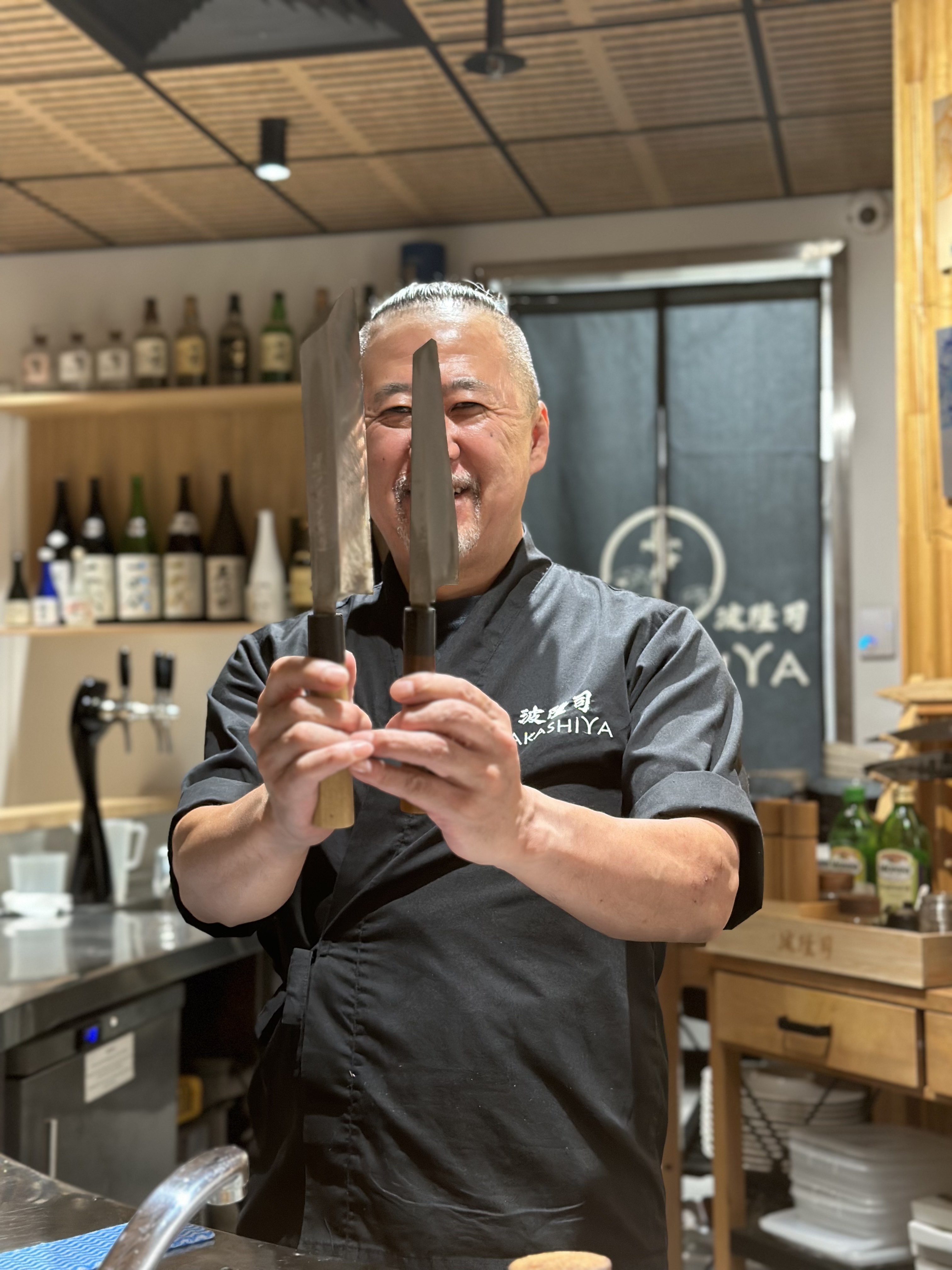 저 두 개의 칼을 들고 활짝 미소짓고 있는 Takashi 셰프의 모습은 꽤 오래 기억에 남을 듯하다.